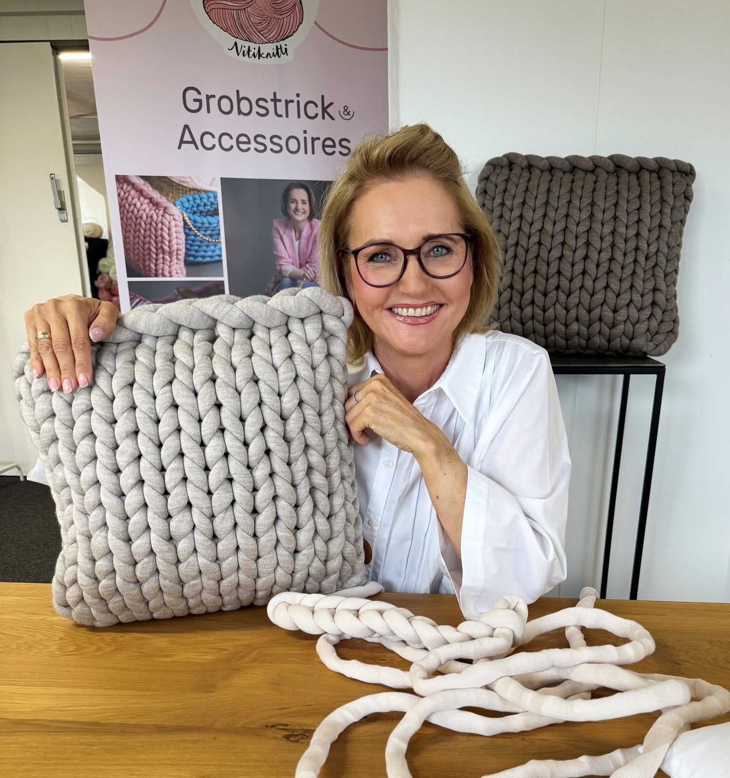 Auf dieser Seite findest du einfachen Anleitungen für verschiedene Grobsticktaschen, Grobstrickkissen und...