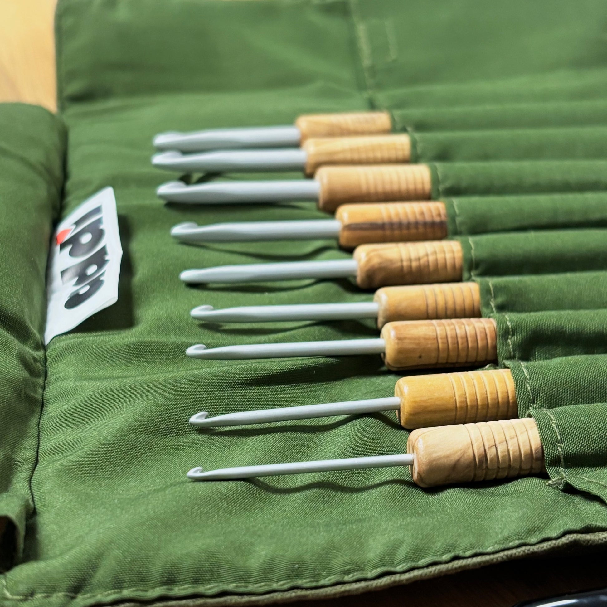 Aufrollen und Staunen. Für alle Liebhaber der handschmeichelnden Olivenholz-Häkelnadeln gibt es jetzt ein wunderschönes Textilstoff Roll-Etui inkl. 9 Olivenholz-Wollhäkelnadeln von 2 – 6 mm mit eloxierten Haken.