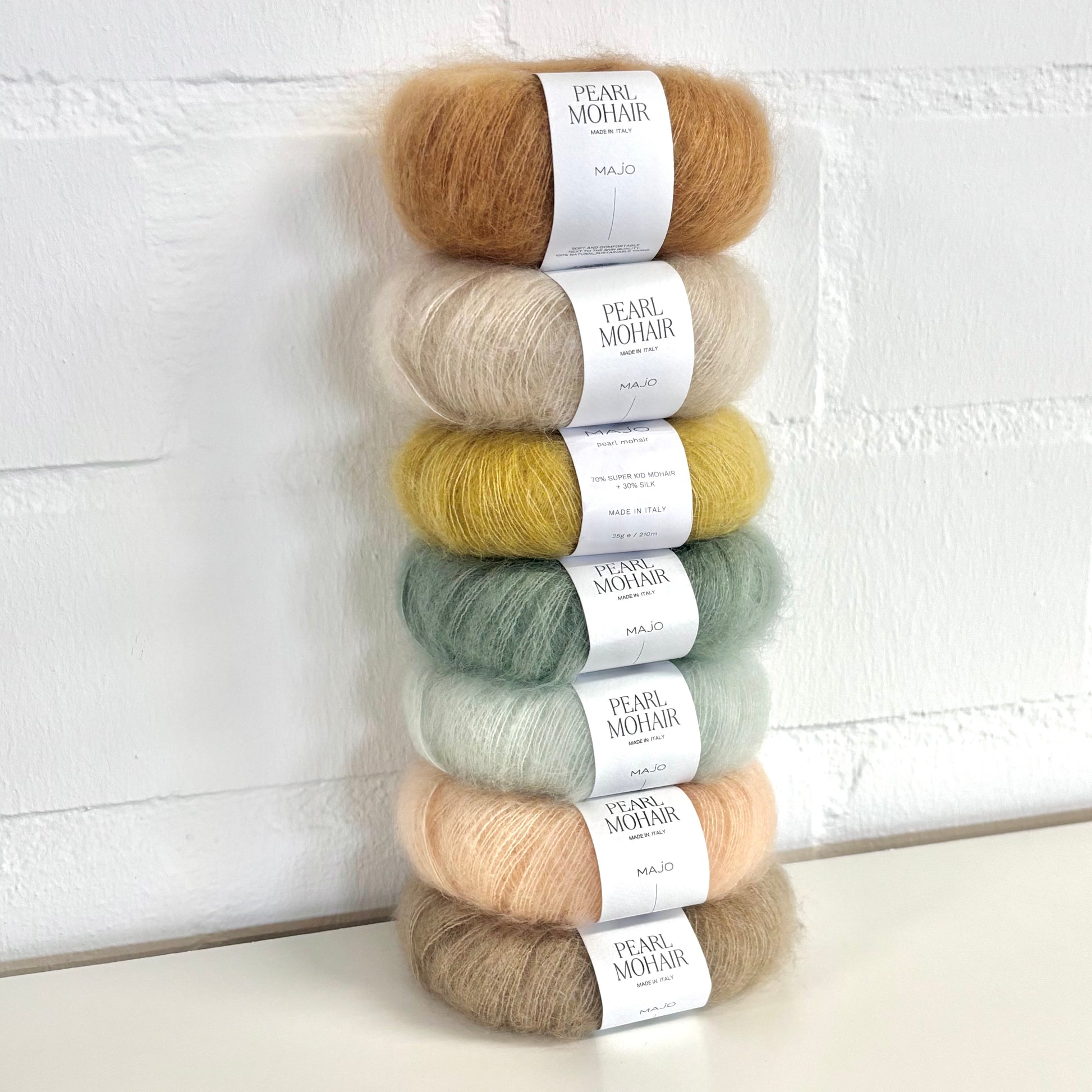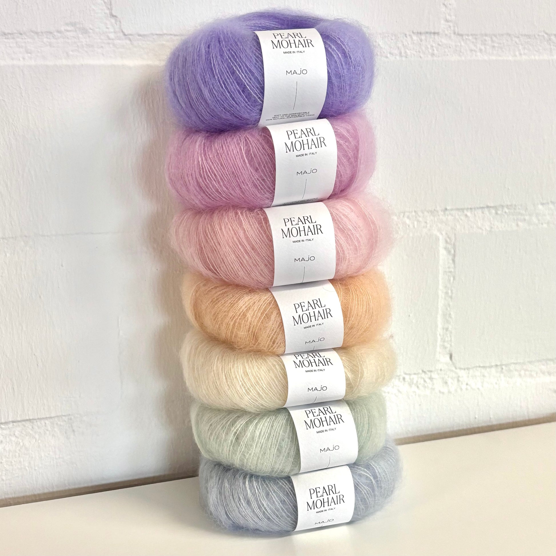 Wir wählen Garne aus, die besonders weich auf der Haut sind und ein wunderbares Gefühl vermitteln. Super Kid Mohair, das für Pearl Mohair verwendet wird, ist die feinste Mohairqualität, die nur aus der ersten Schur von Angoraziegenbabys im Alter von fünf bis sechs Monaten gewonnen werden kann. Diese Fasern sind 24 bis 26 Mikrometer dick, was als sehr sanft zur Haut gilt. Seide ist eine natürliche, nicht allergene Faser, die seit der Antike verwendet wird und für Menschen mit sehr empfindlicher Haut geeignet ist. Merinowolle, die für Fine Merino verwendet wird, ist absolut juckfrei, da die Faser im Vergleich zu anderen Wollfasern extrem fein ist. Sie sind flexibler und biegen sich sanft, wenn sie gegen die Haut gedrückt werden, und verursachen keine Reizungen.
