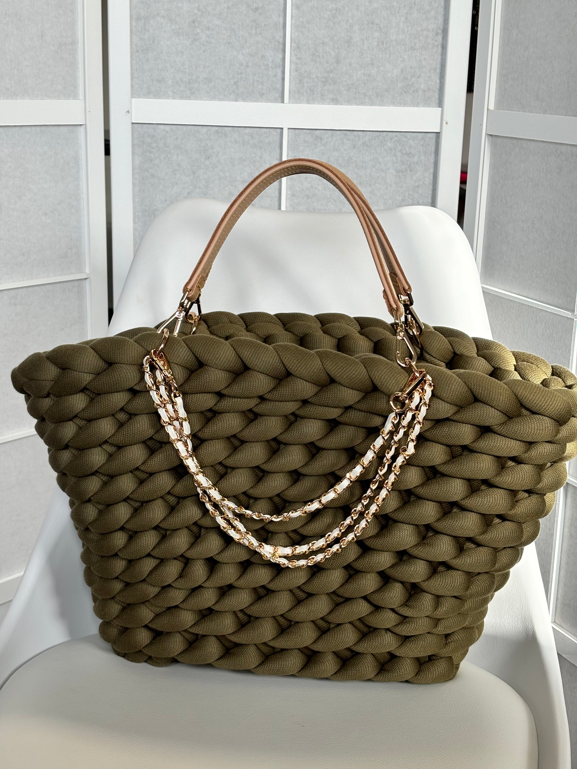 Grobstricktasche Basket Bag in Olive mit Griffen von OSDesign
