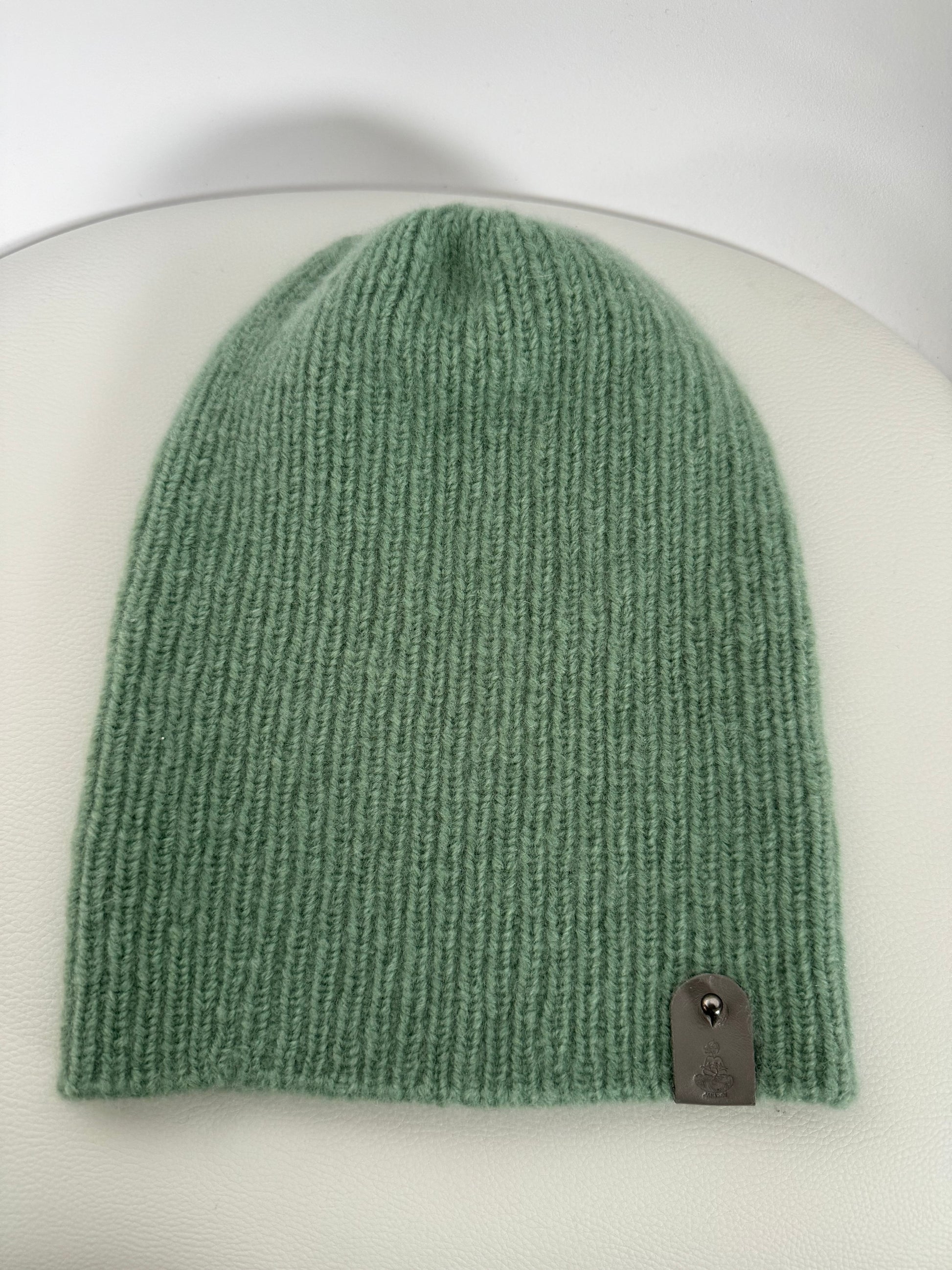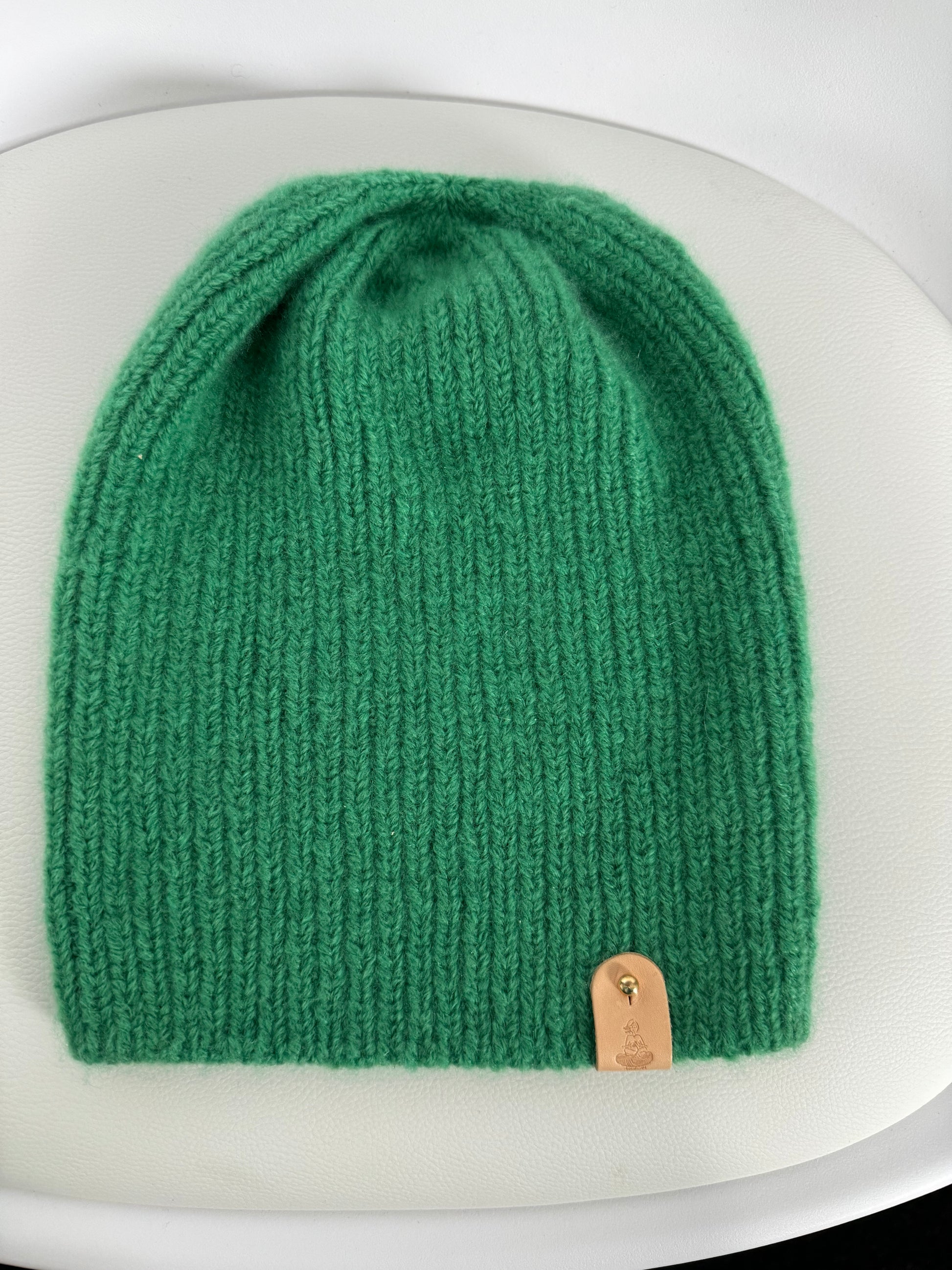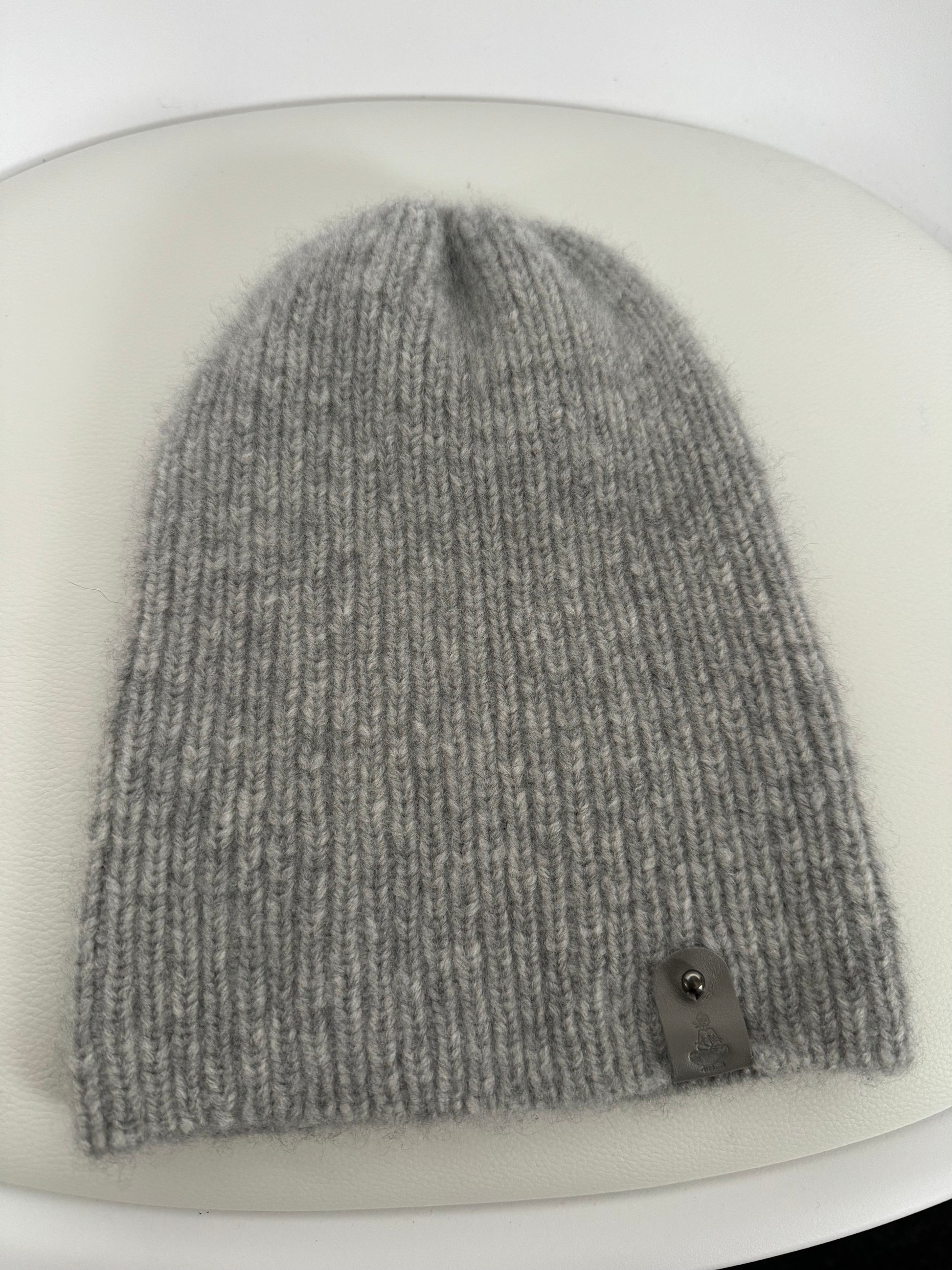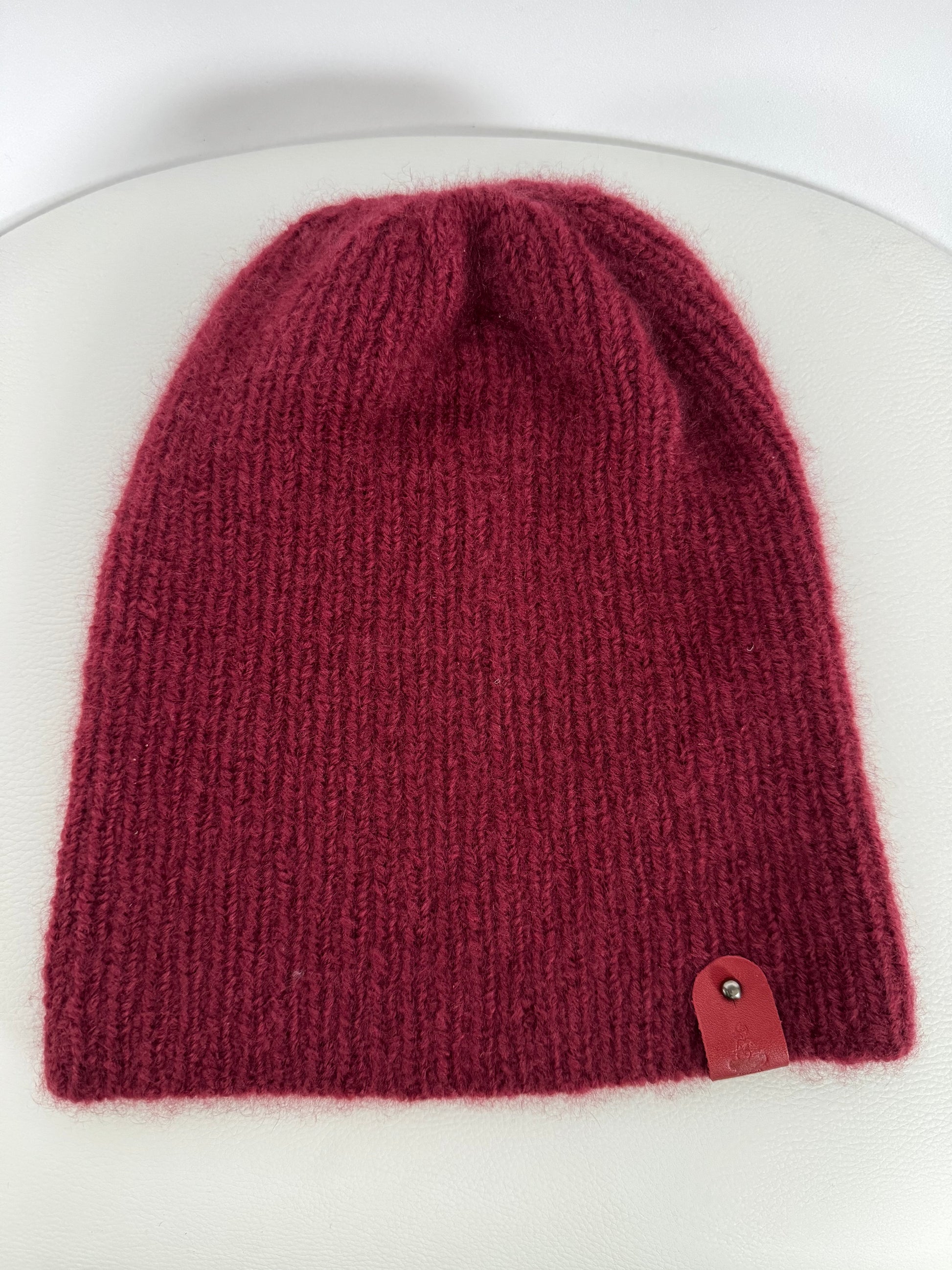 Gestrickt wurde die Mütze aus unserem Garn Cashmere Air : 88% Kaschmir / 12 % Polyamid